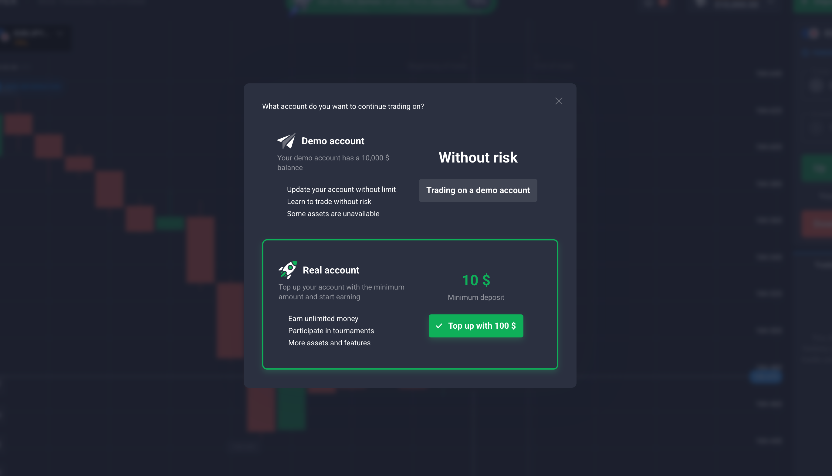 Practice with a free $10,000 demo account before using real money.