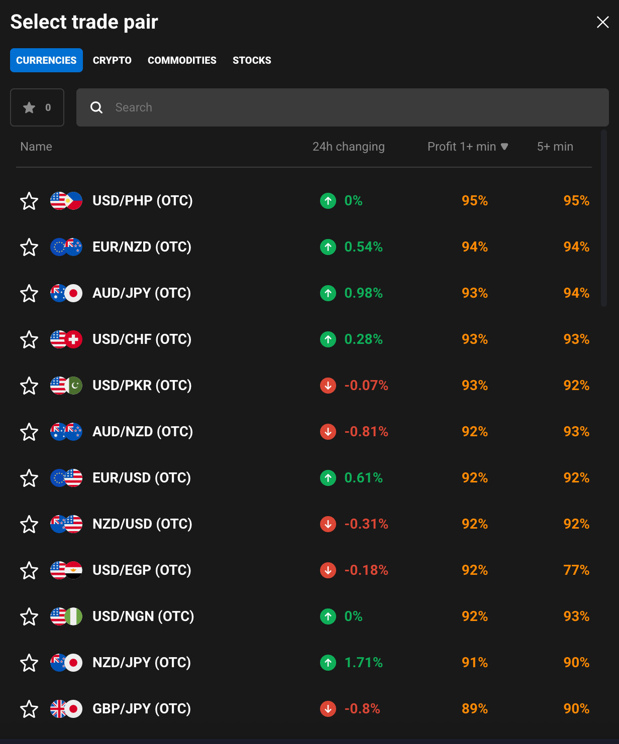 The platform supports a wide range of assets, including currencies, cryptocurrencies, commodities, indices, and stocks.