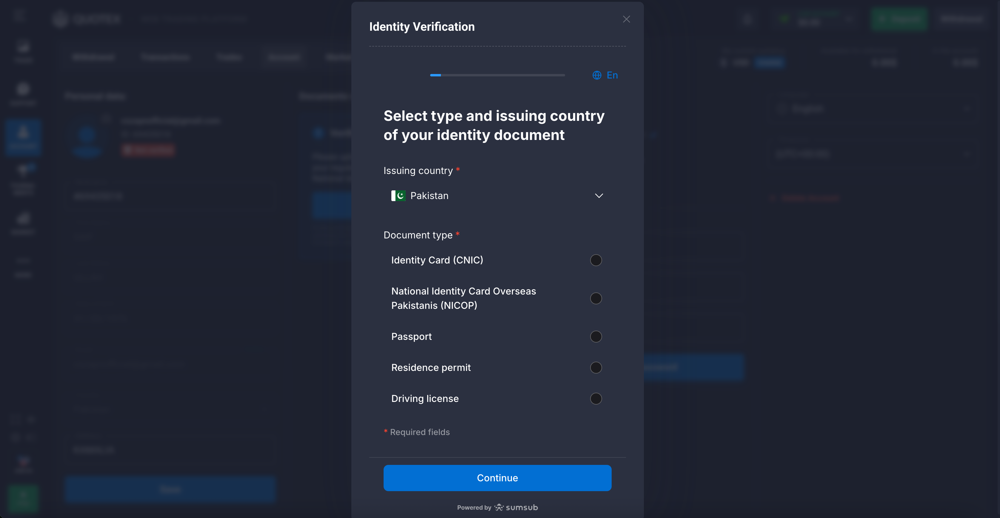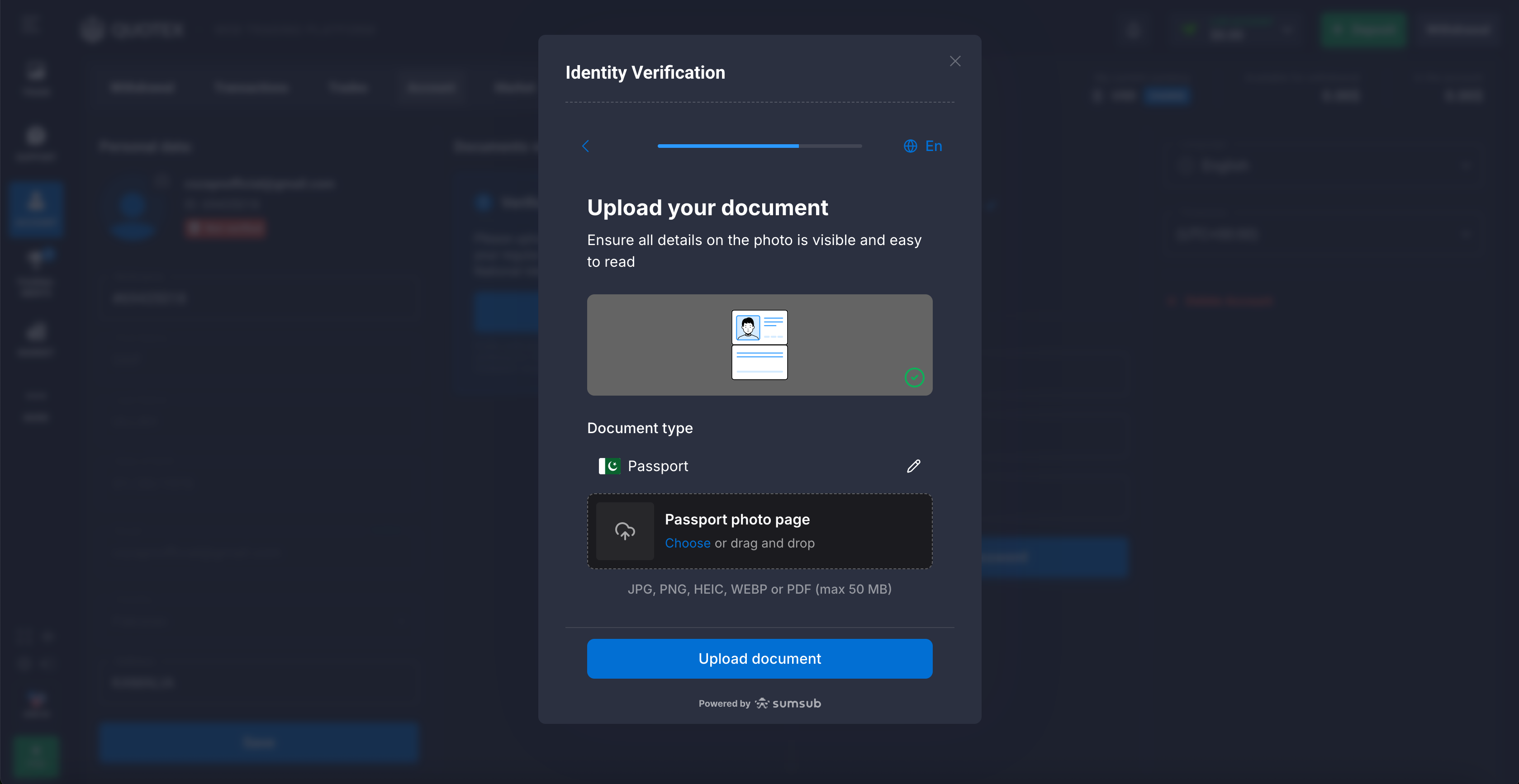 Quotex accepts multiple Pakistani documents, and the process takes less than 2 minutes once the documents are submitted correctly.